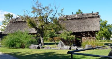 このムラは、長野県立歴史館の地下から発見された古墳時代中ごろのムラを復元したもので、ムラには発掘された茅葺きの家、物置小屋、ムラの儀式の場など8棟の建物が復元されています。また、田んぼや畑も作られているので当時の人々の暮 … 続きを読む 科野のムラ